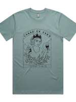 So my design centers around the stunning if not a little tired Queen of Cups, but instead of holding a chalace she holds the sacred wine and coffee, elixers to motherhood.